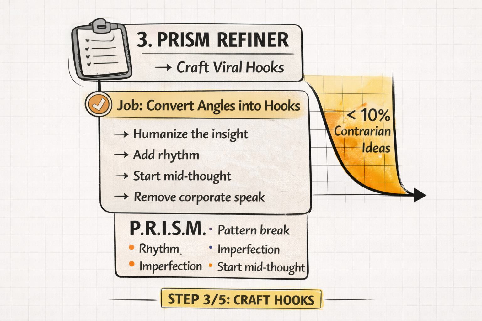 - Convert each into a 1-3 sentence Hook.