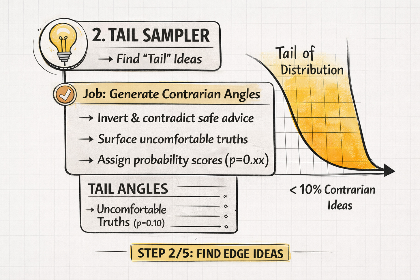 The Tail Sampler identifies ideas that contradict, invert, or expose the false assumptions embedded in the consensus.