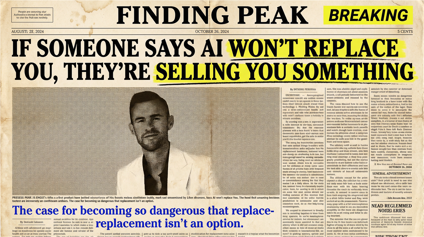 The only path out is becoming so dangerous (you + AI) that replacing you isn’t even a conversation.