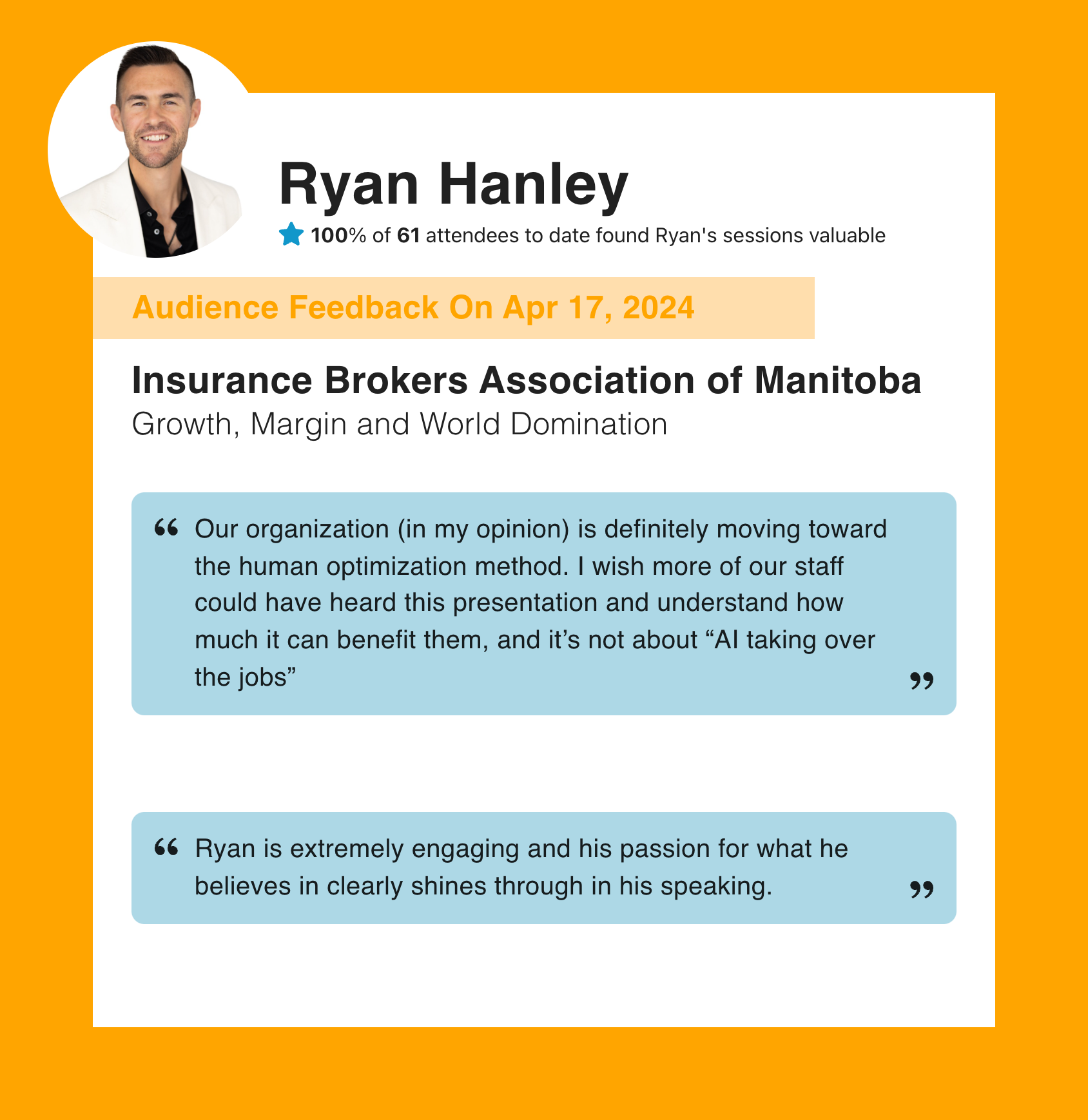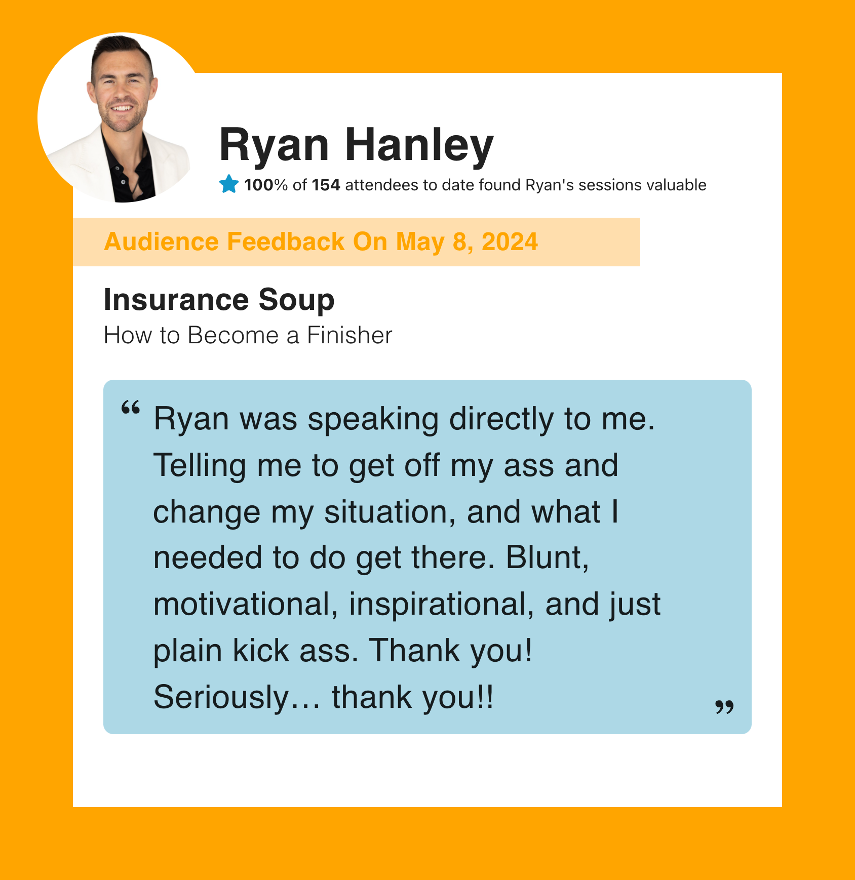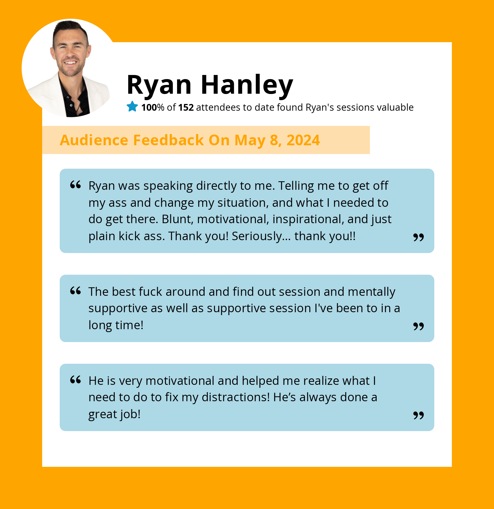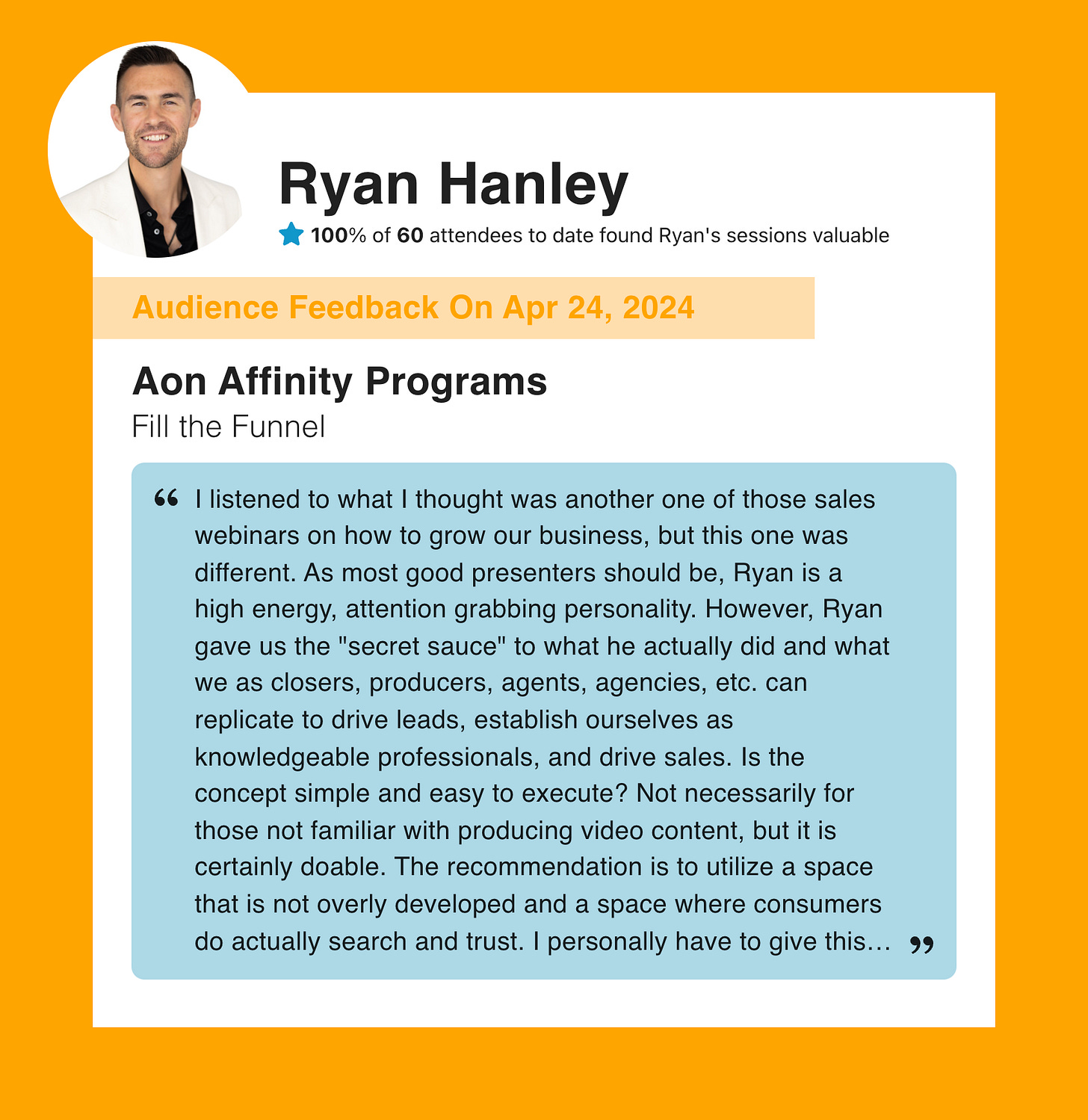 Learn why hundreds of event professionals trust Ryan Hanley with their audience.